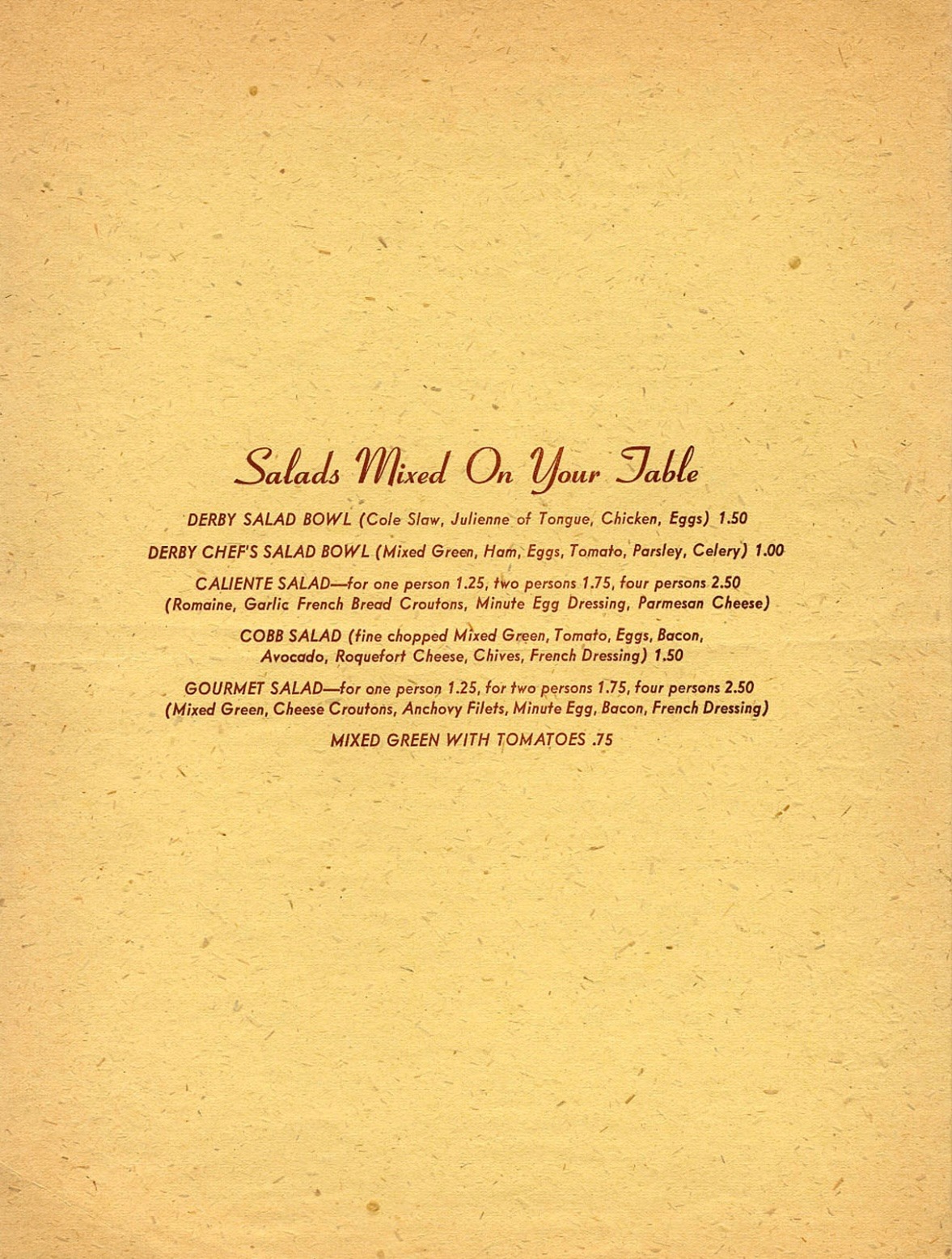 The Los Angeles Public Library has an online archive of all of the menus they have in their Rare Books Room. You can plug in any year, neighborhood, cuisine, etc. and it’ll come up with results. So cool to see how tastes and prices have changed, what kind of foods were trending and how few historical restaurants we have left in LA.